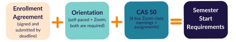Enrollment Timeline for Fall 2026 Cohort CAS 50 ✅ If you submit your Enrollment Agreement (EA) by May 4 You will be enrolled in CAS 50: July 6–18. ⏳ If you submit your EA between May 5 and July 20 |