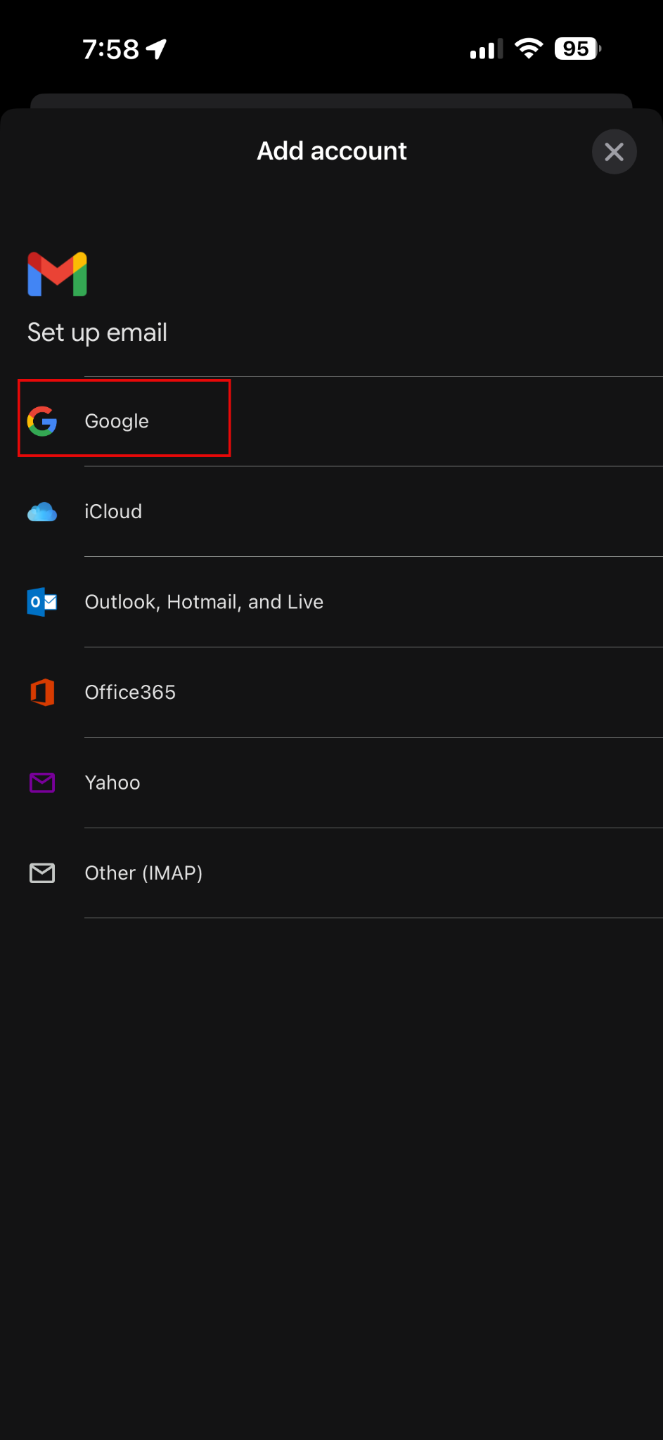 4. Choose the provider: Google