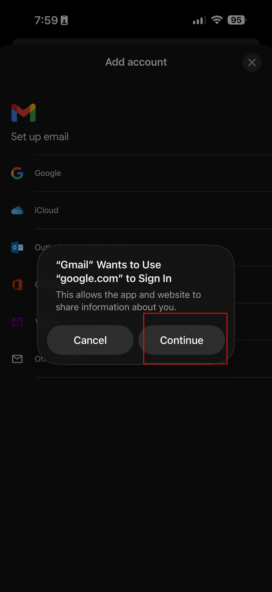 3. Tap Add another account.