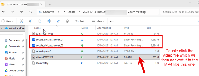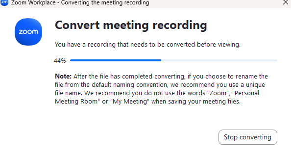 If you stop the conversion, you will need to locate the meeting recording you want to upload, then double-click it to convert it manually to MP4.