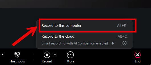 3. A box will pop up, and you need to click ‘Record to this Computer.’